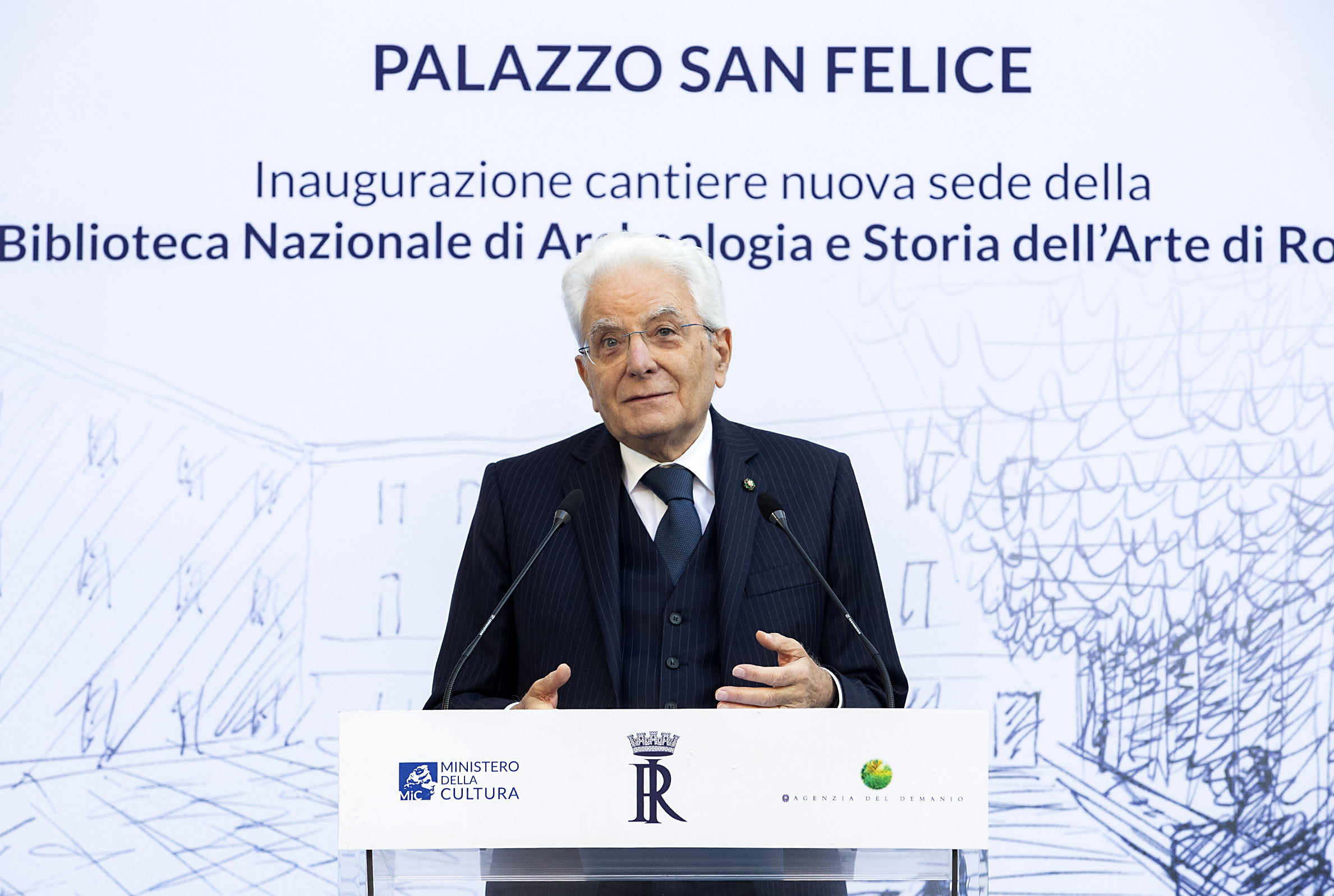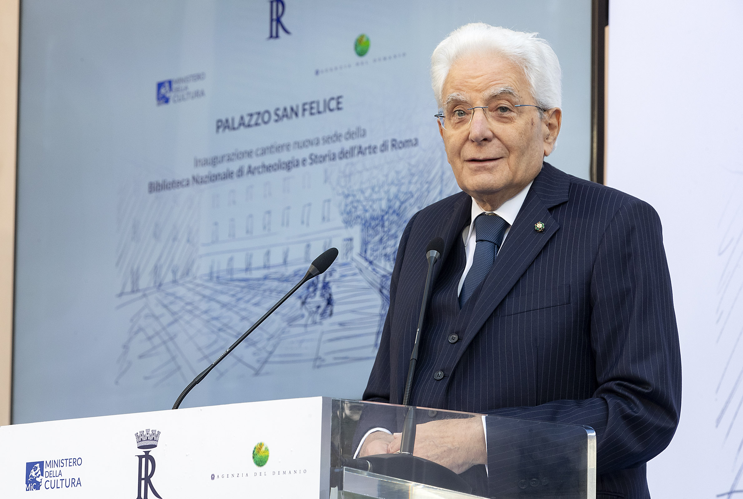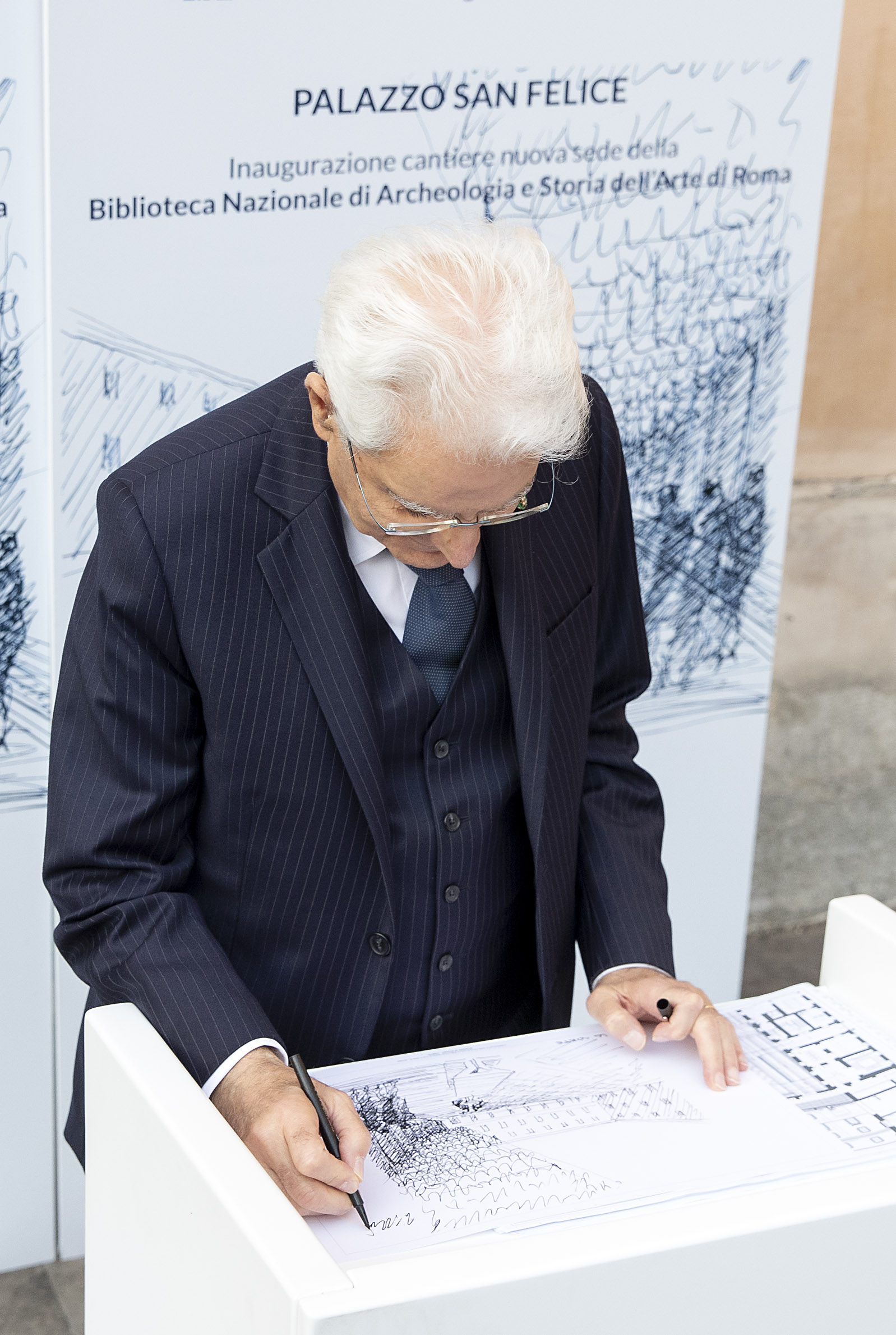 Roma, 12/10/2023 (II mandato) Il Presidente Sergio Mattarella all'inaugurazione del cantiere della nuova sede della Biblioteca di Archeologia e Storia dell’Arte di Roma