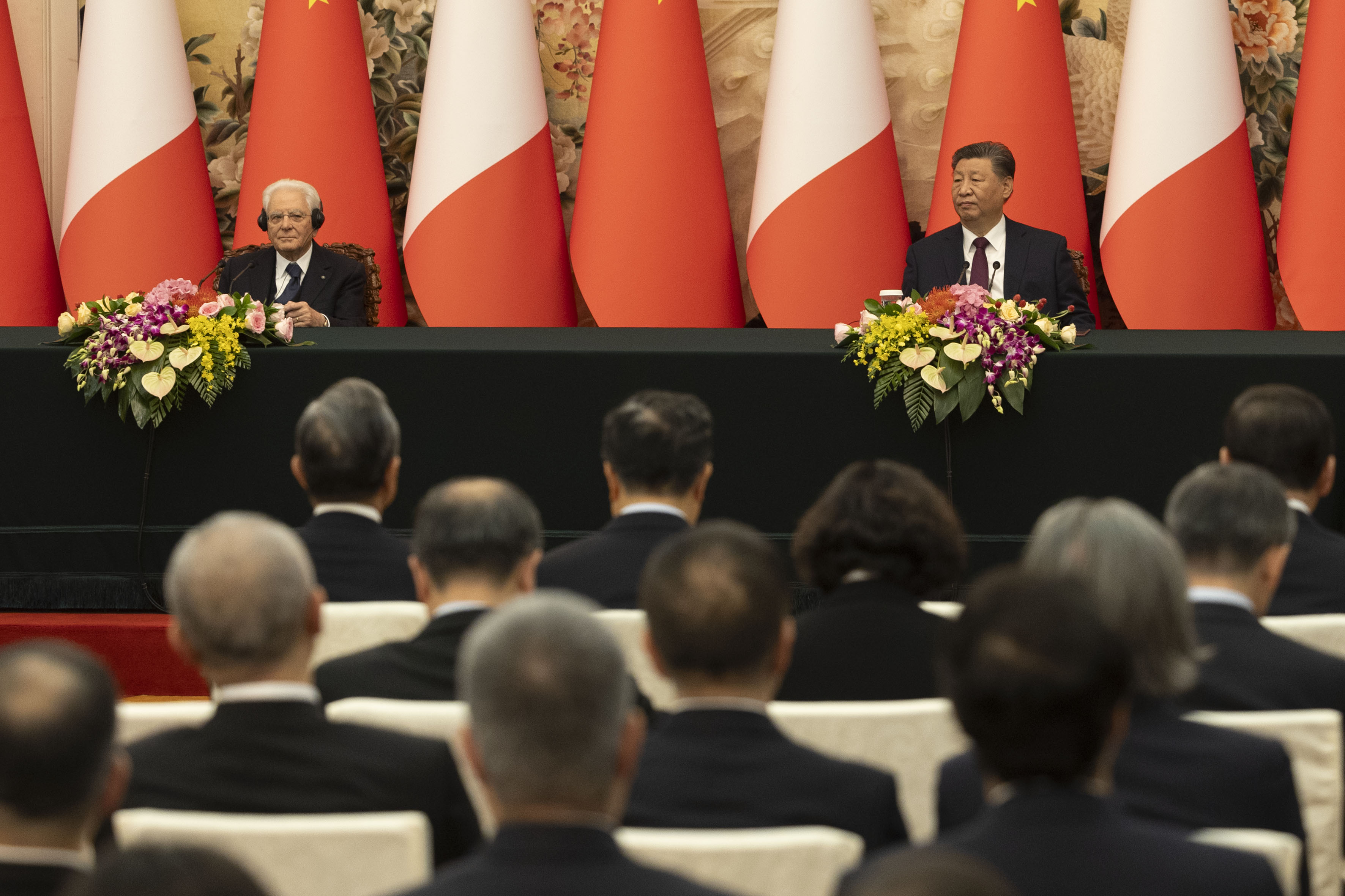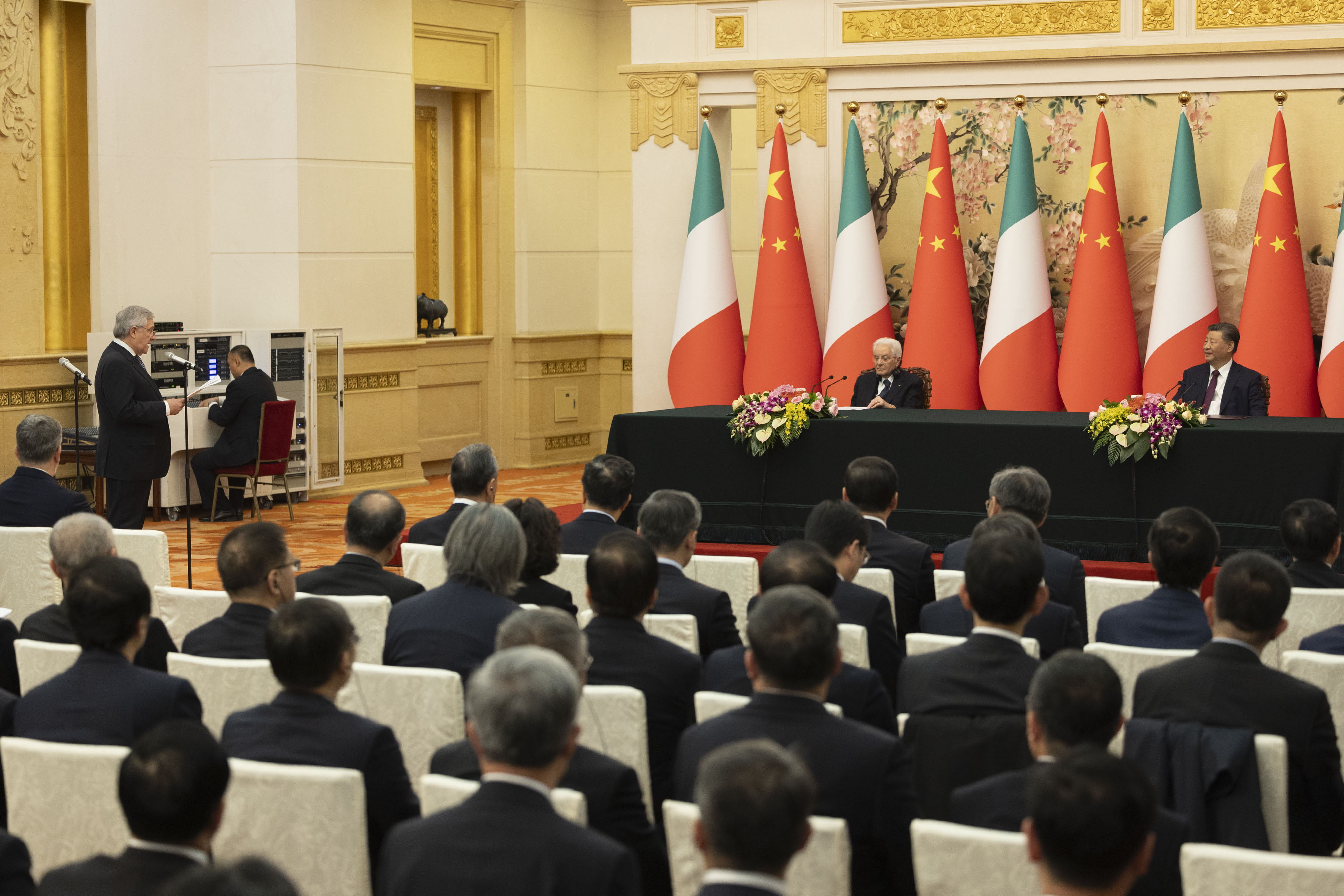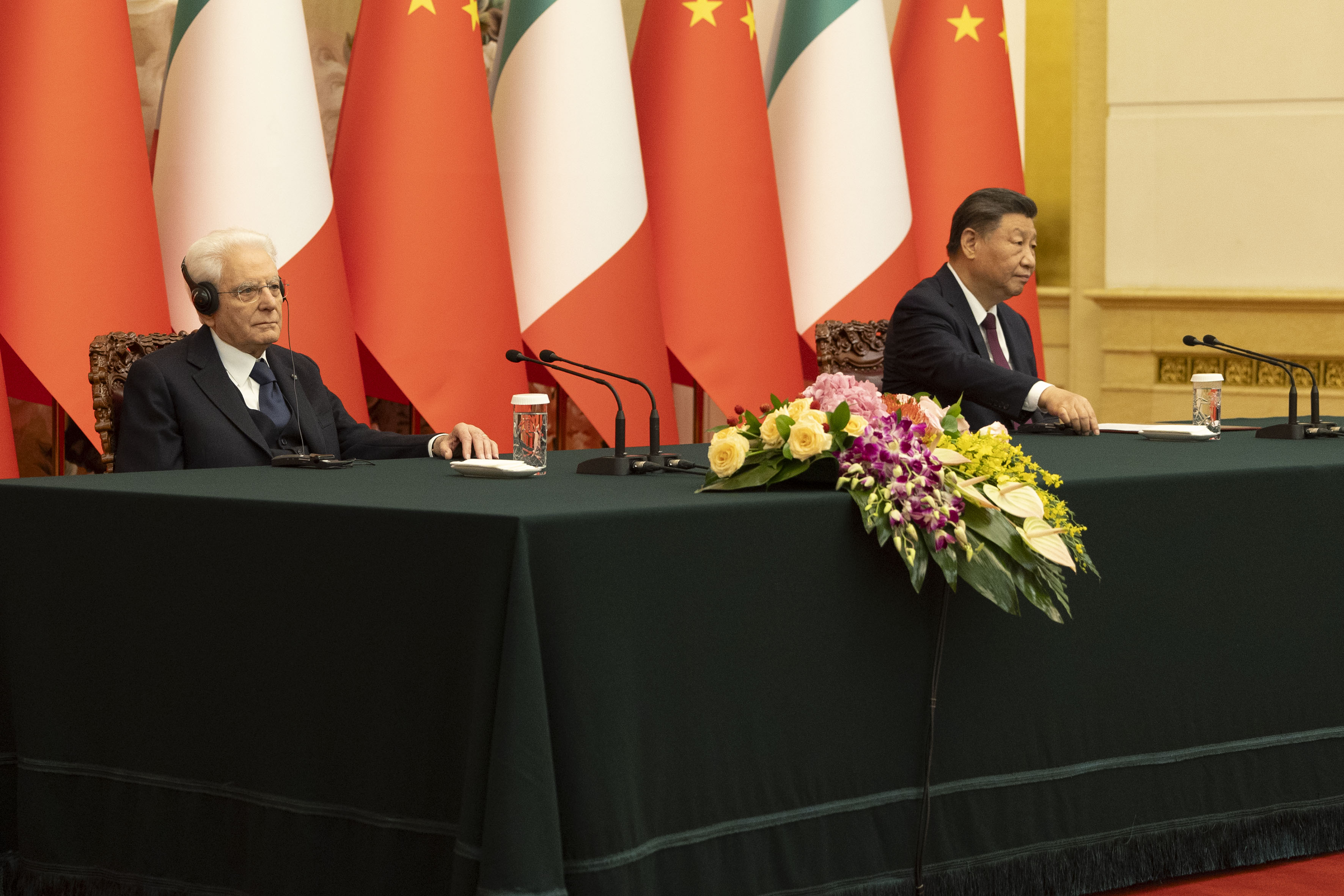 Pechino, 08/11/2024 (II mandato) Il Presidente della Repubblica, Sergio Mattarella, e il Presidente della Repubblica Popolare Cinese, Xi Jinping, durante la Firma di Intese Bilaterali