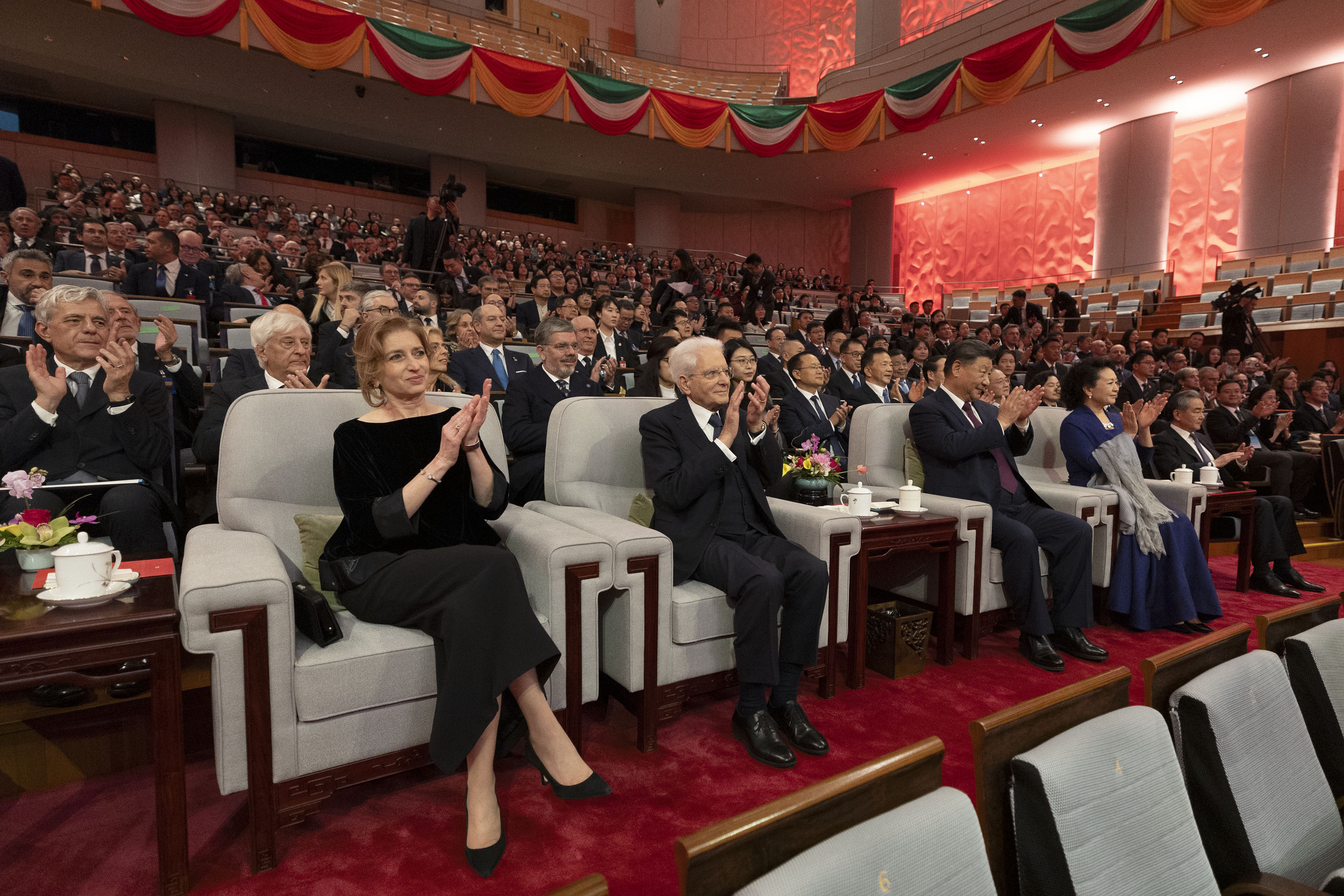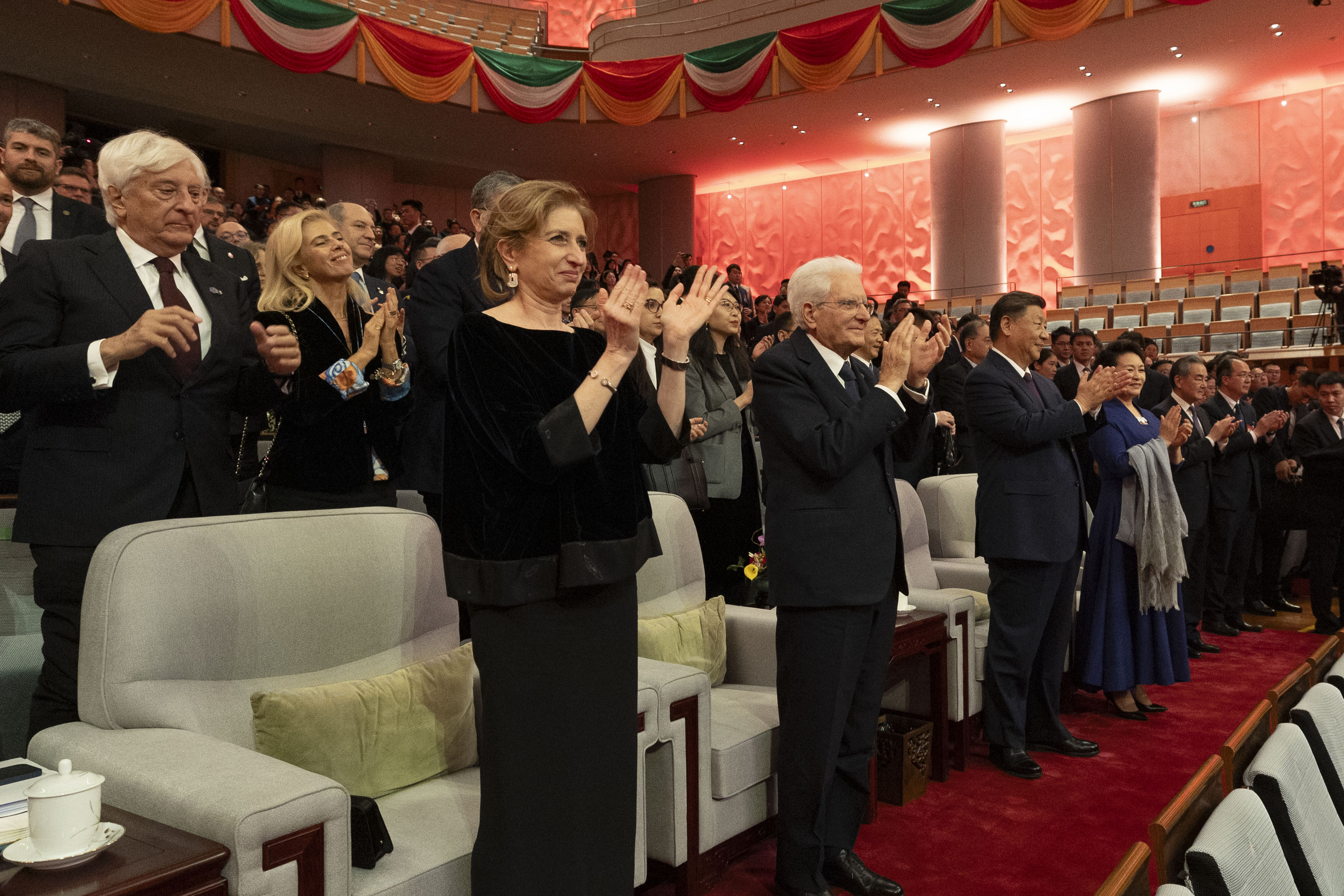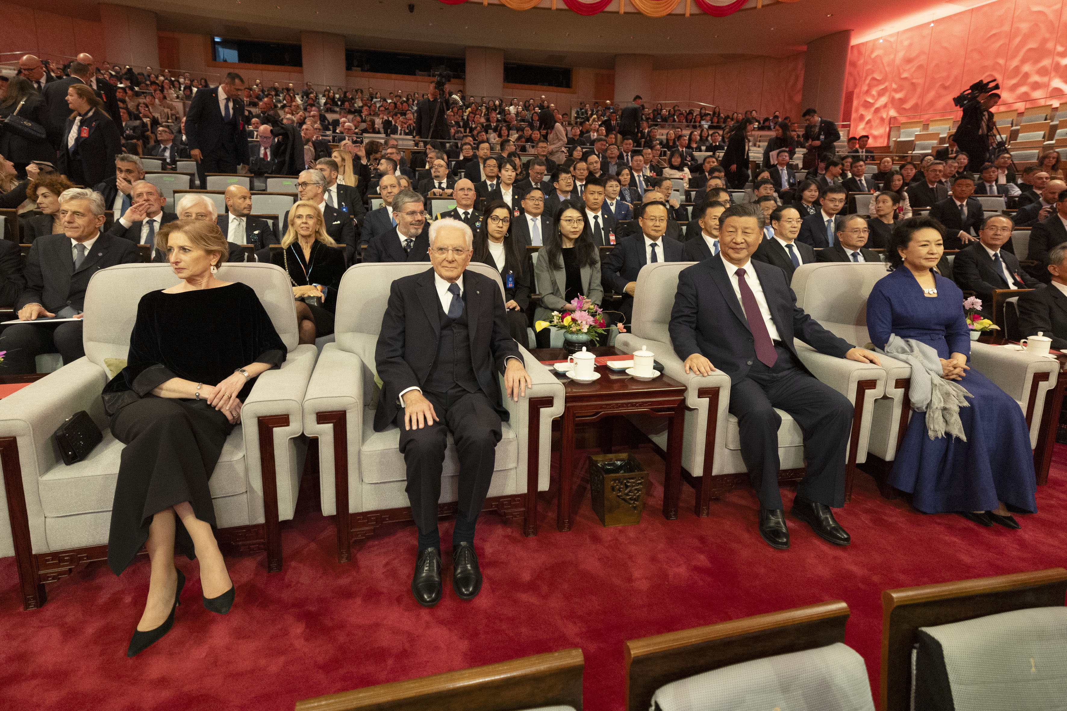 Pechino, 08/11/2024 (II mandato) Il Presidente della Repubblica, Sergio Mattarella e la Signora Laura con il Presidente della Repubblica Popolare Cinese, Xi Jinping e consorte al National Center for the Performing Arts