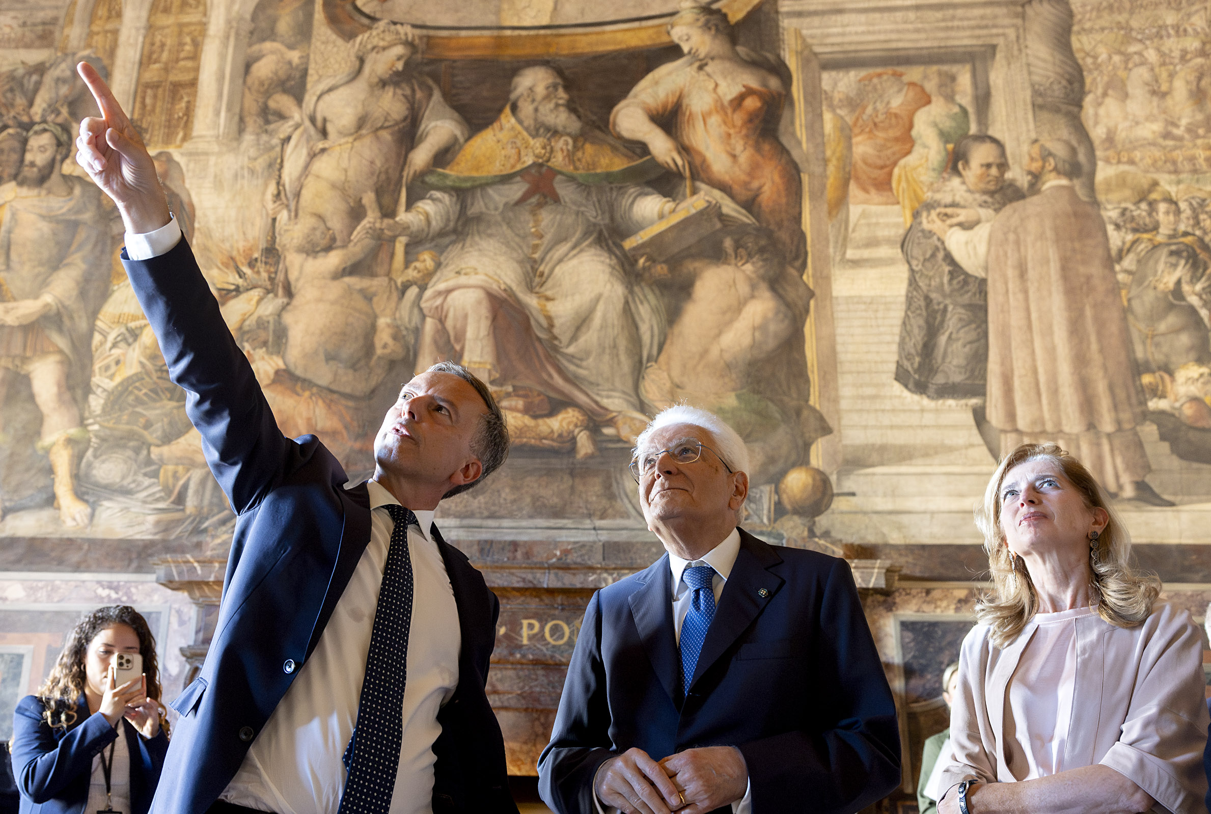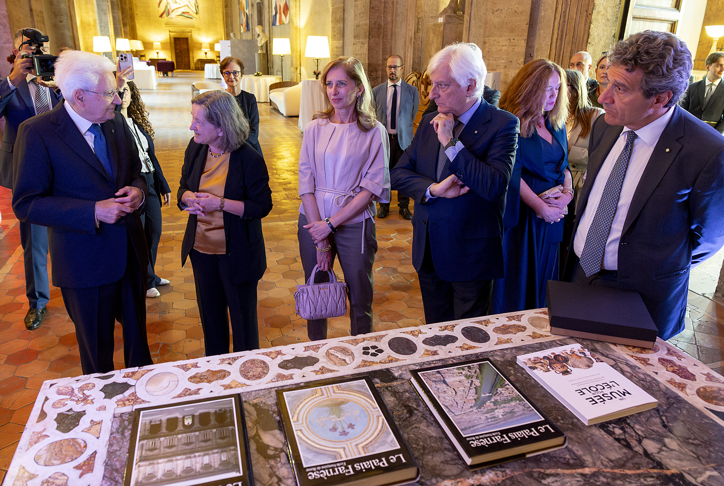 Roma, 26/09/2025 (II mandato) Il Presidente Sergio Mattarella, la Sig.ra Laura e S.E. il Sig. Martin Briens, Ambasciatore di Francia in Italia, a Palazzo Farnese, in occasione della cerimonia per i 150 anni dall’istituzione dell’Ambasciata di Francia e dell’École Française de Rome
