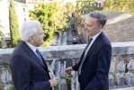 Roma, 26/09/2025 (II mandato) Il Presidente Sergio Mattarella e S.E. il Sig. Martin Briens, Ambasciatore di Francia in Italia, a Palazzo Farnese, in occasione della cerimonia per i 150 anni dall’istituzione dell’Ambasciata di Francia e dell’École Française de Rome con i dipendenti dell'Ambasciata