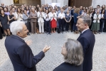 Roma, 26/09/2025 (II mandato) Il Presidente Sergio Mattarella e S.E. il Sig. Martin Briens, Ambasciatore di Francia in Italia, a Palazzo Farnese, in occasione della cerimonia per i 150 anni dall’istituzione dell’Ambasciata di Francia e dell’École Française de Rome salutano i dipendenti dell'Ambasciata