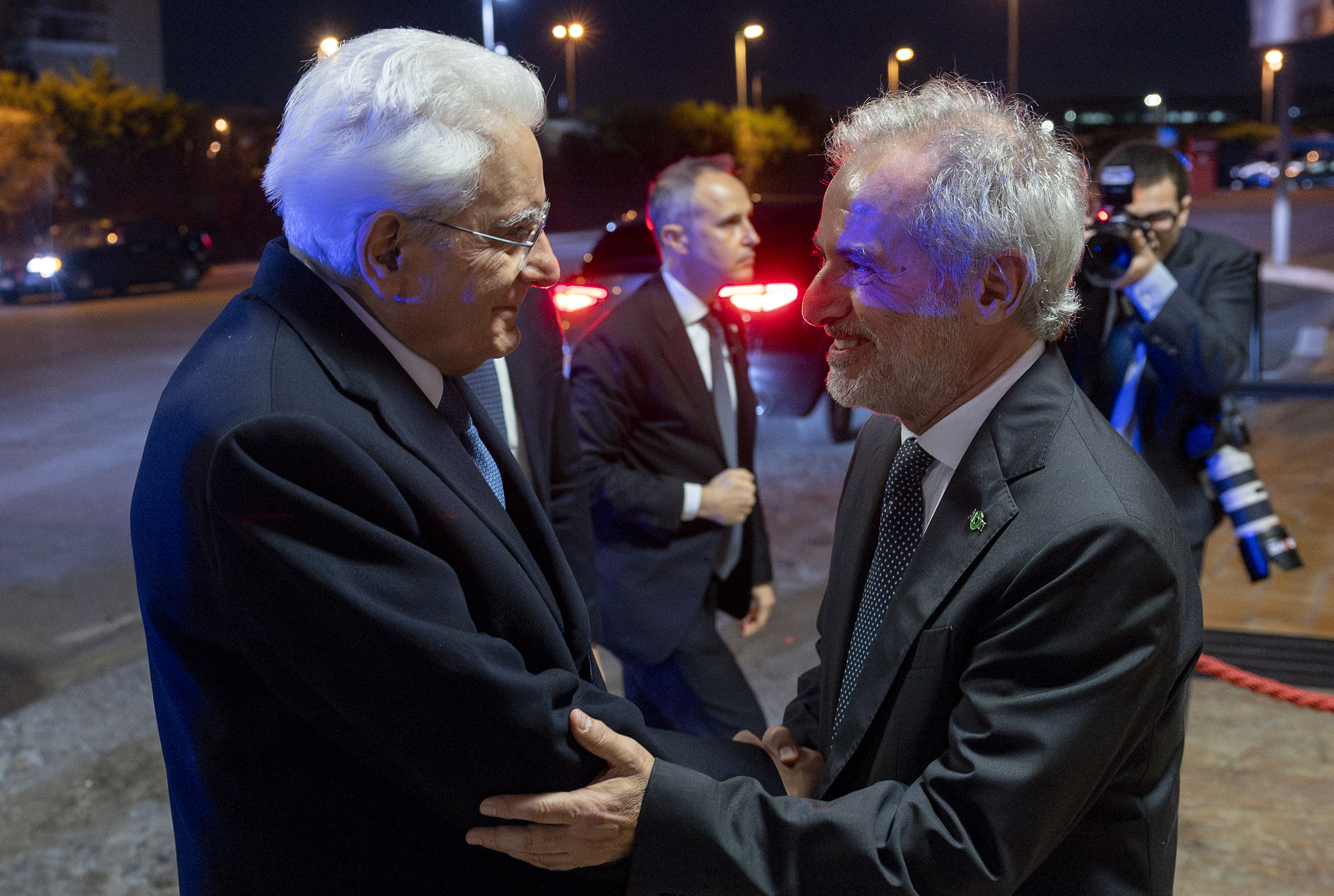 Roma, 07/11/2025 (II mandato) Il Presidente Sergio Mattarella accolto da Francesco Perrone, Presidente dell’Associazione Nazionale di Oncologia Medica, in occasione dell'intervento al XXVII Congresso Nazionale dell’AIOM