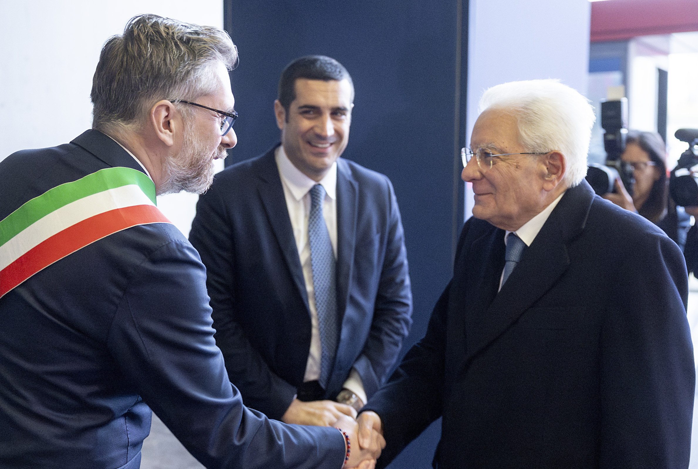Bologna, 12/11/2025 (II mandato) Il Presidente della Repubblica Sergio Mattarella accolto dal Sindaco di Bologna Matteo Lepore e dal Presidente della Regione Emilia Romagna Michele de Pascale, alla cerimonia di apertura della 42^ Assemblea annuale ANCI – Associazione Nazionale Comuni Italiani – dal titolo “Insieme per il bene comune”