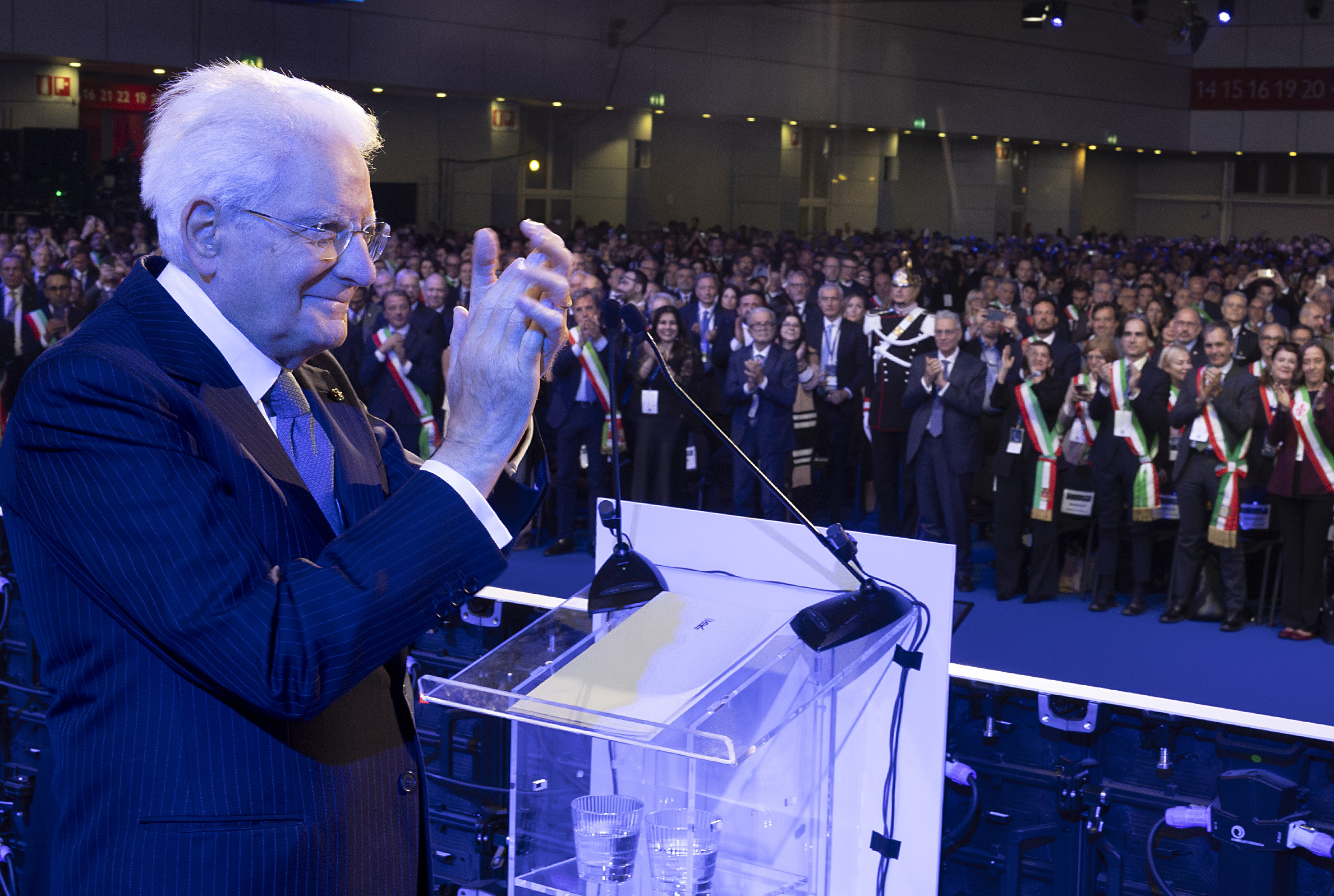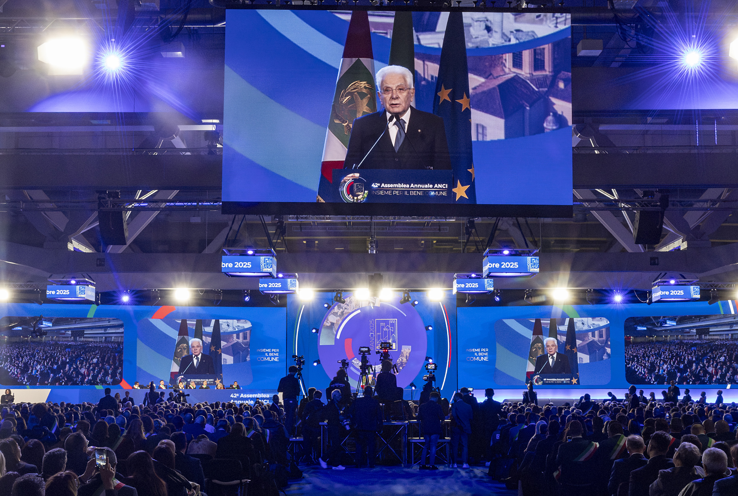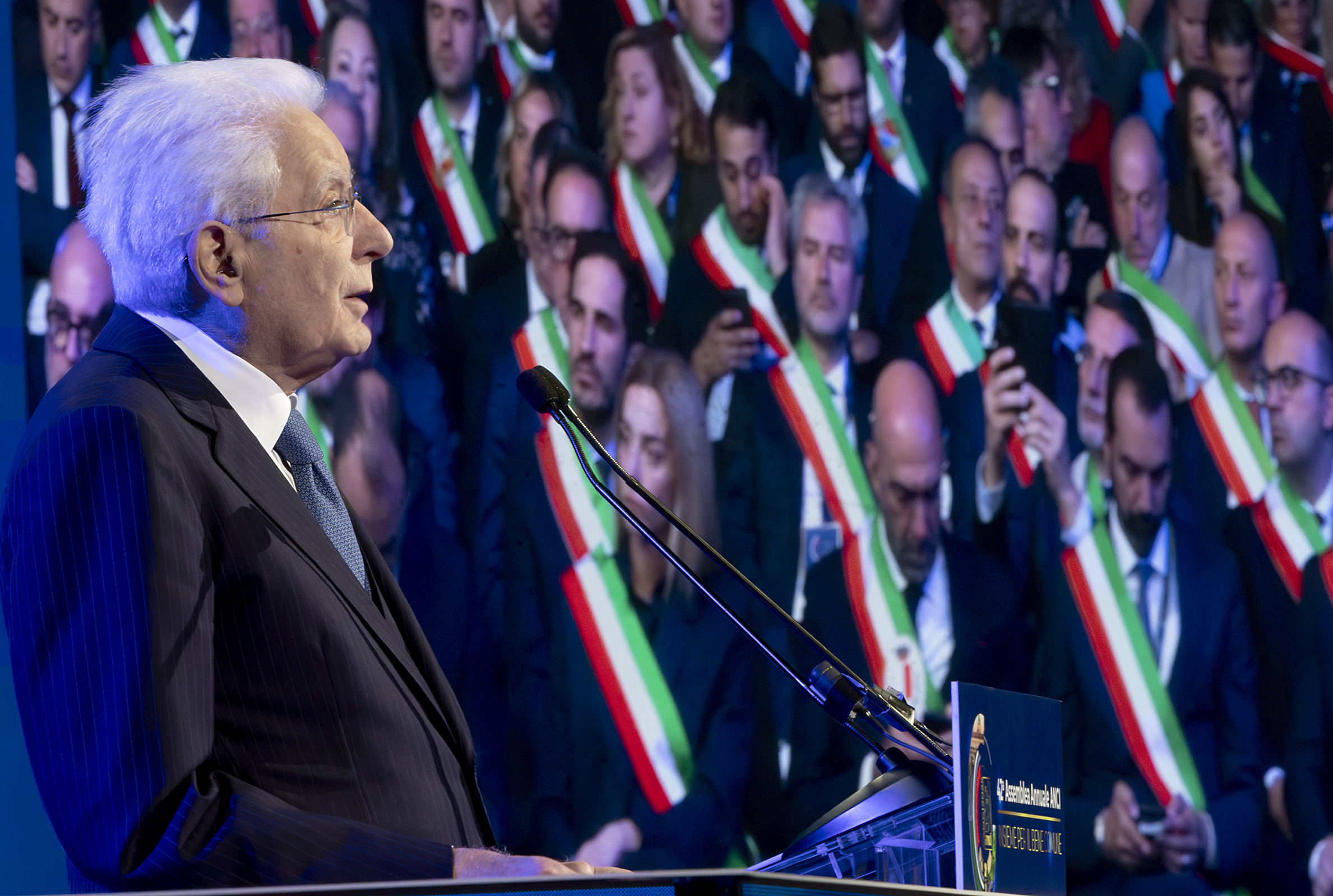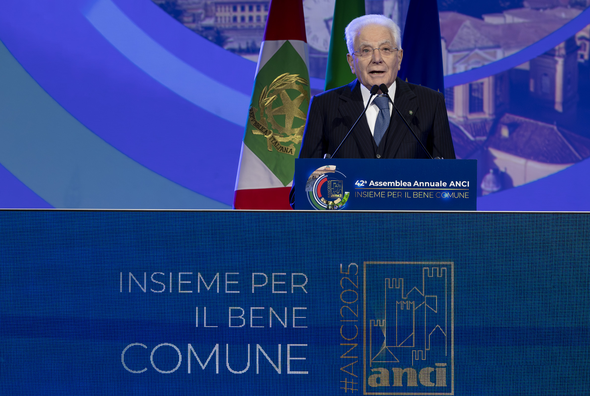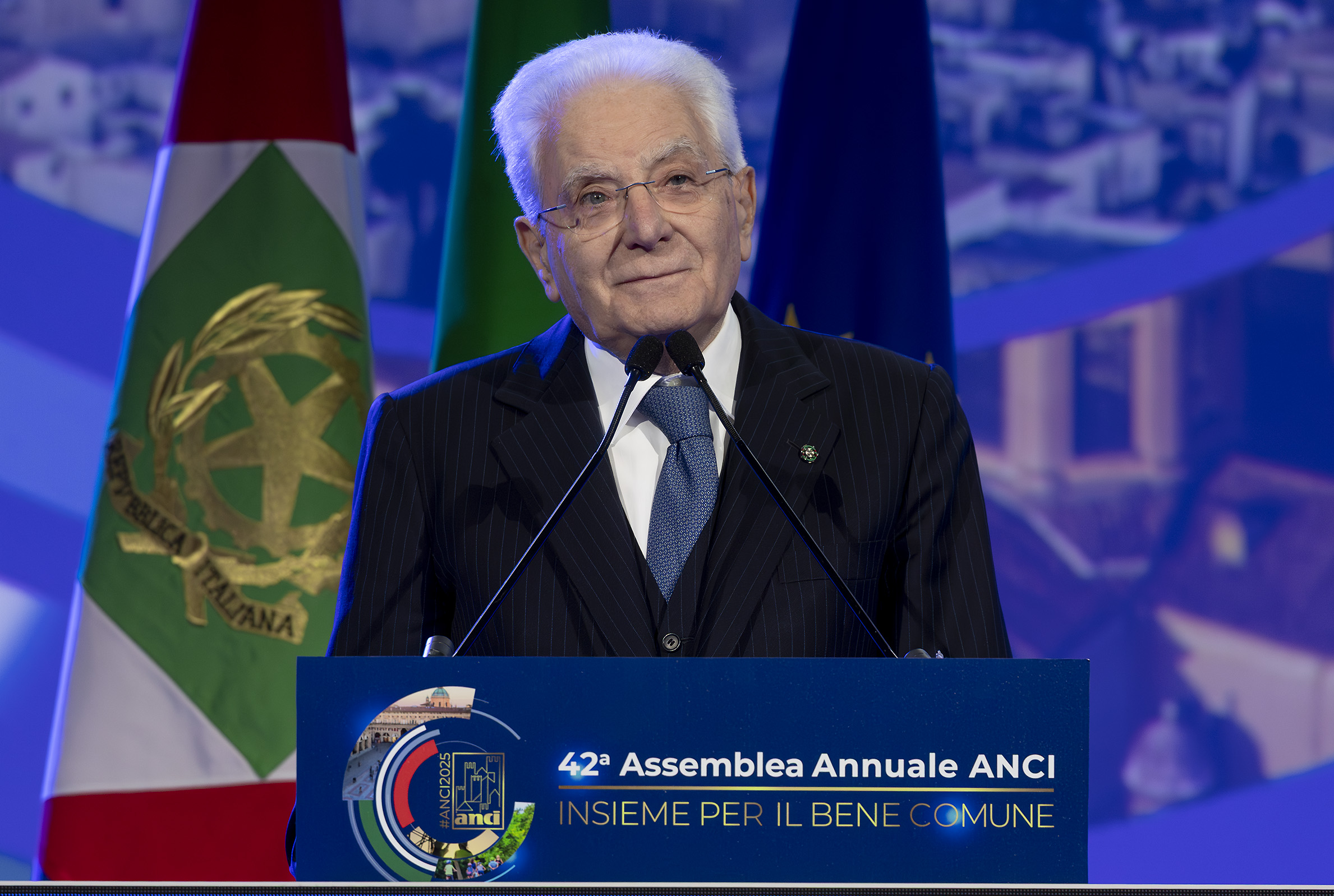 Bologna, 12/11/2025 (II mandato) Il Presidente della Repubblica Sergio Mattarella alla cerimonia di apertura della 42^ Assemblea annuale ANCI – Associazione Nazionale Comuni Italiani – dal titolo “Insieme per il bene comune”