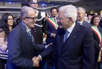 Bologna, 12/11/2025 (II mandato) Il Presidente della Repubblica Sergio Mattarella con il Sindaco di Napoli Gaetano Manfredi, Presidente ANCI, alla cerimonia di apertura della 42^ Assemblea annuale ANCI – Associazione Nazionale Comuni Italiani – dal titolo “Insieme per il bene comune”