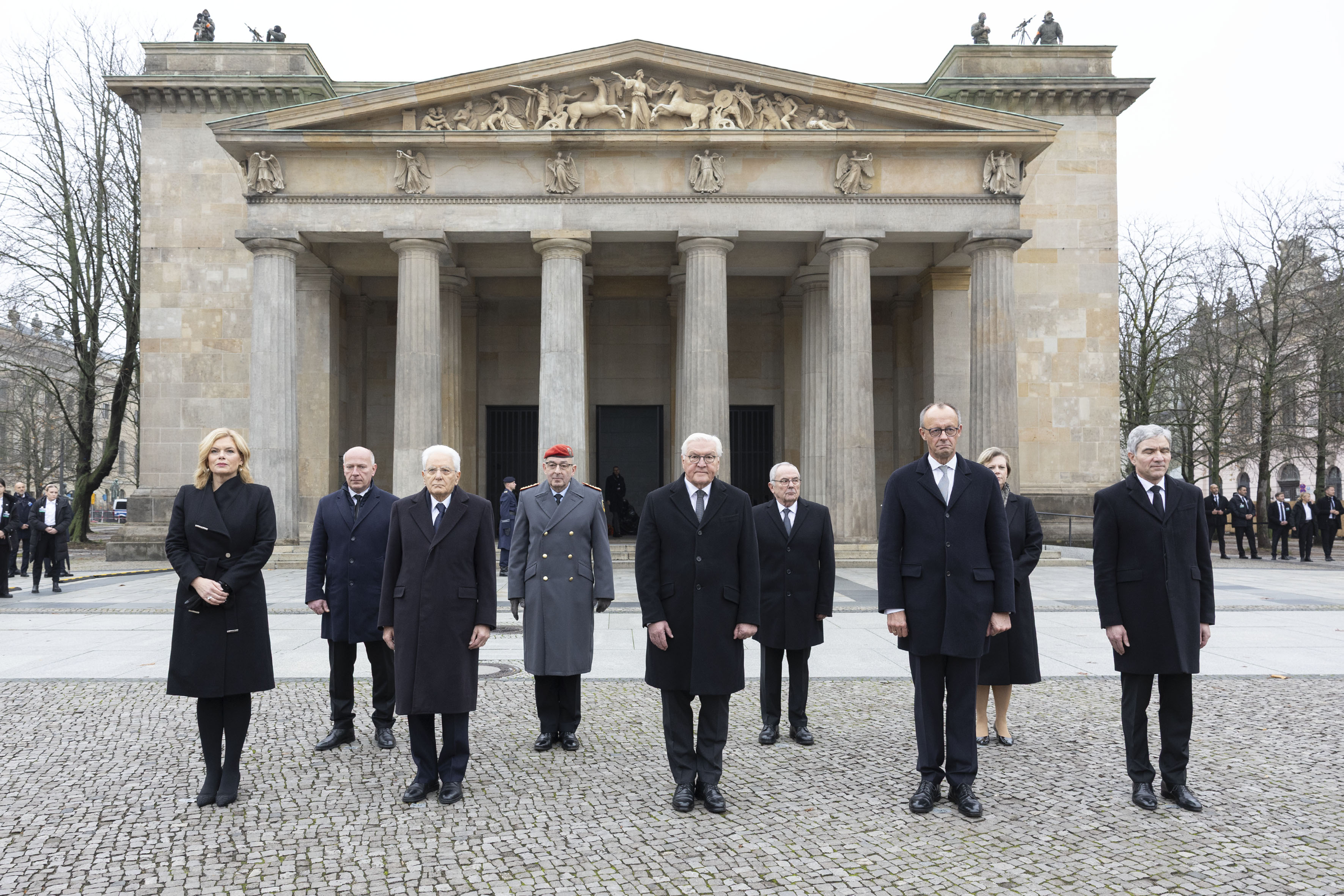 Berlino, 16/11/2025 (II mandato) Il Presidente della Repubblica Sergio Mattarella depone una corona al Monumento della Nuova Guardia