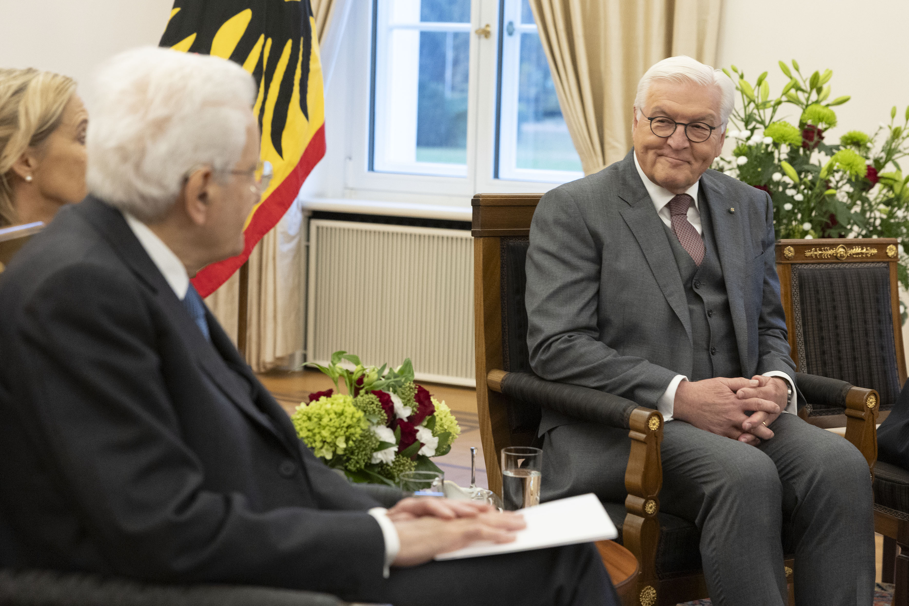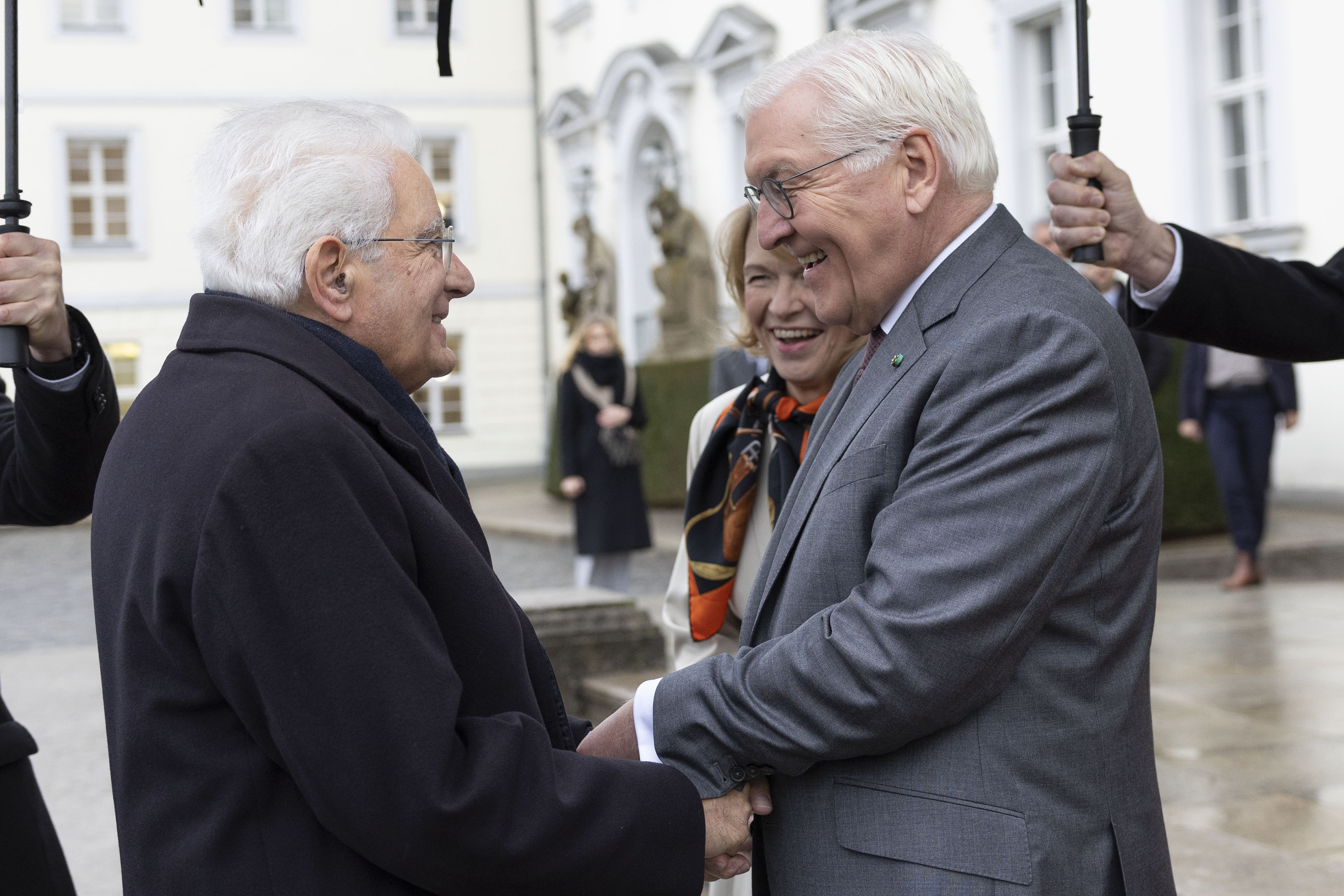Berlino, 15/11/2025 (II mandato) Il Presidente della Repubblica Sergio Mattarella, e la Sig.ra Laura a Palazzo Bellevue accolti da Frank-Walter Steinmeier, Presidente della Repubblica Federale di Germania e Consorte, Sig.ra Elke Büdenbender