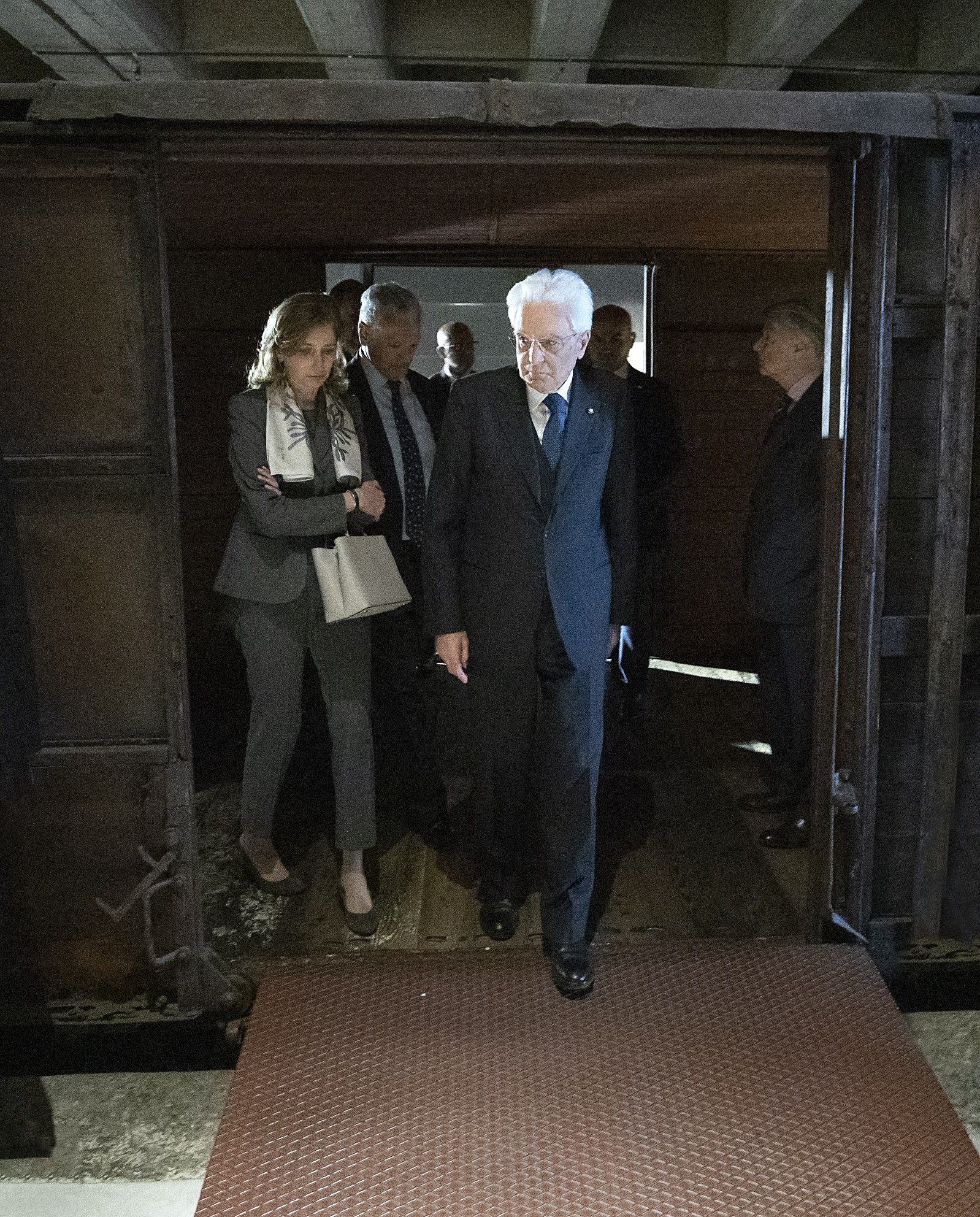 Milano, 21/05/2019 (I mandato) Il Presidente Sergio Mattarella nel corso della visita al Memoriale della Shoah attraversa uno dei vagoni usati per la deportazione
