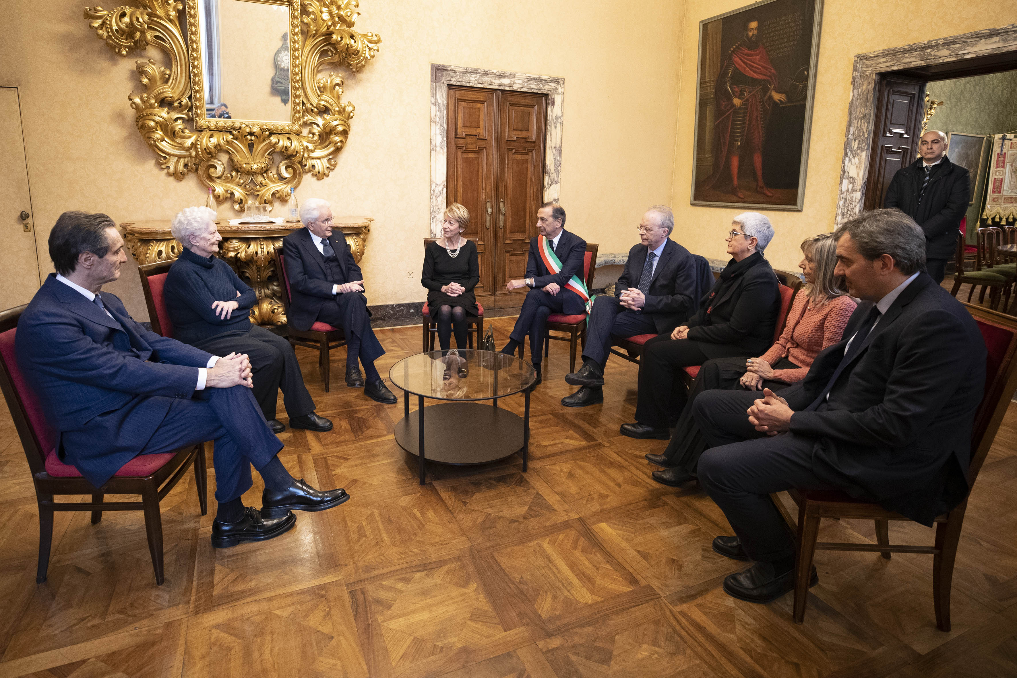 Milano, 12/12/2019 (I mandato) Il Presidente della Repubblica Sergio Mattarella a Palazzo Marino con Gemma Calabresi, Licia Pinelli e le figlie Silvia e Claudia Pinelli, in occasione del 50° anniversario della Strage di Piazza Fontana
