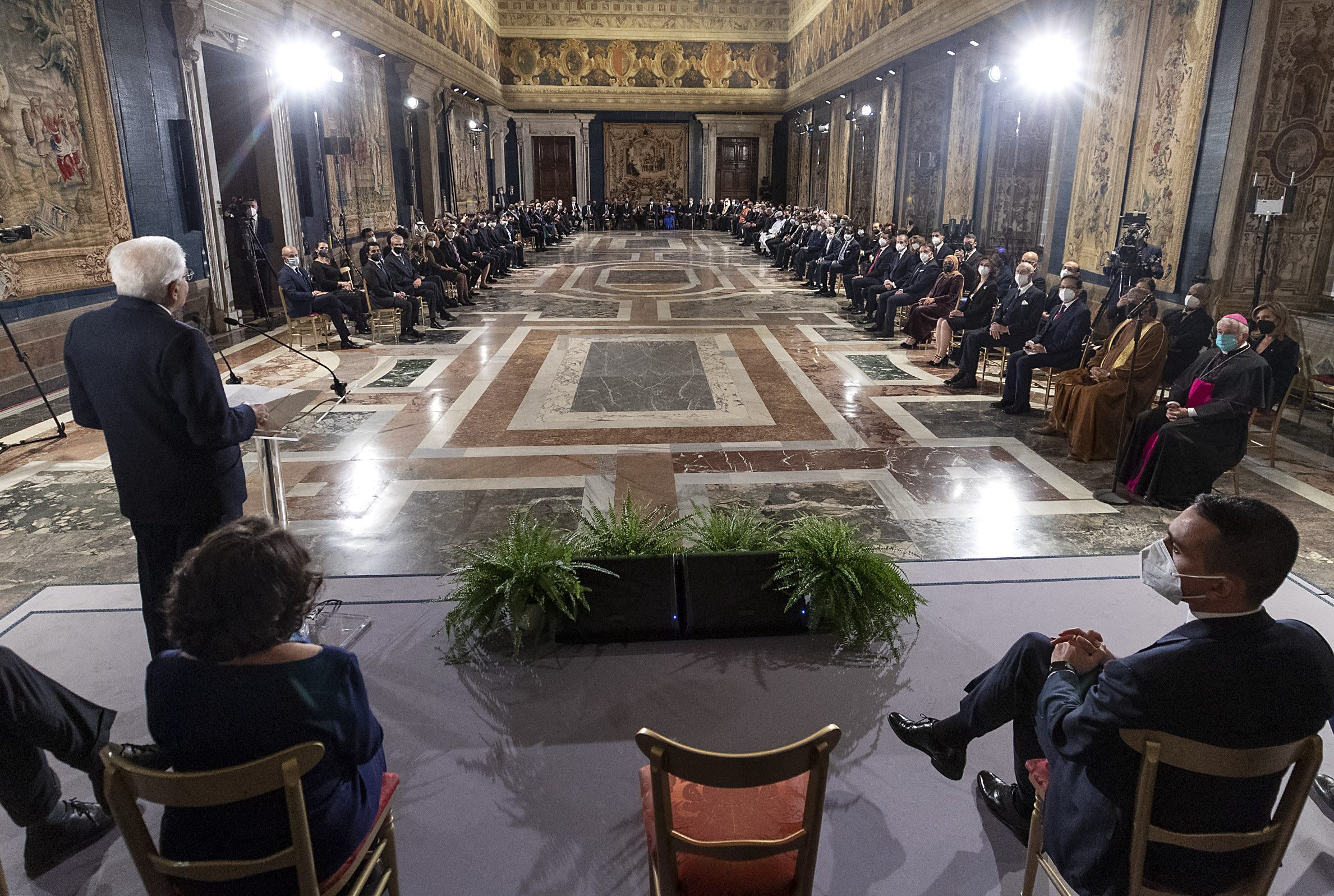 Palazzo del Quirinale, 16/12/2021 (I mandato) Il Presidente Sergio Mattarella nel corso della cerimonia per lo scambio degli auguri di fine anno con il Corpo Diplomatico
