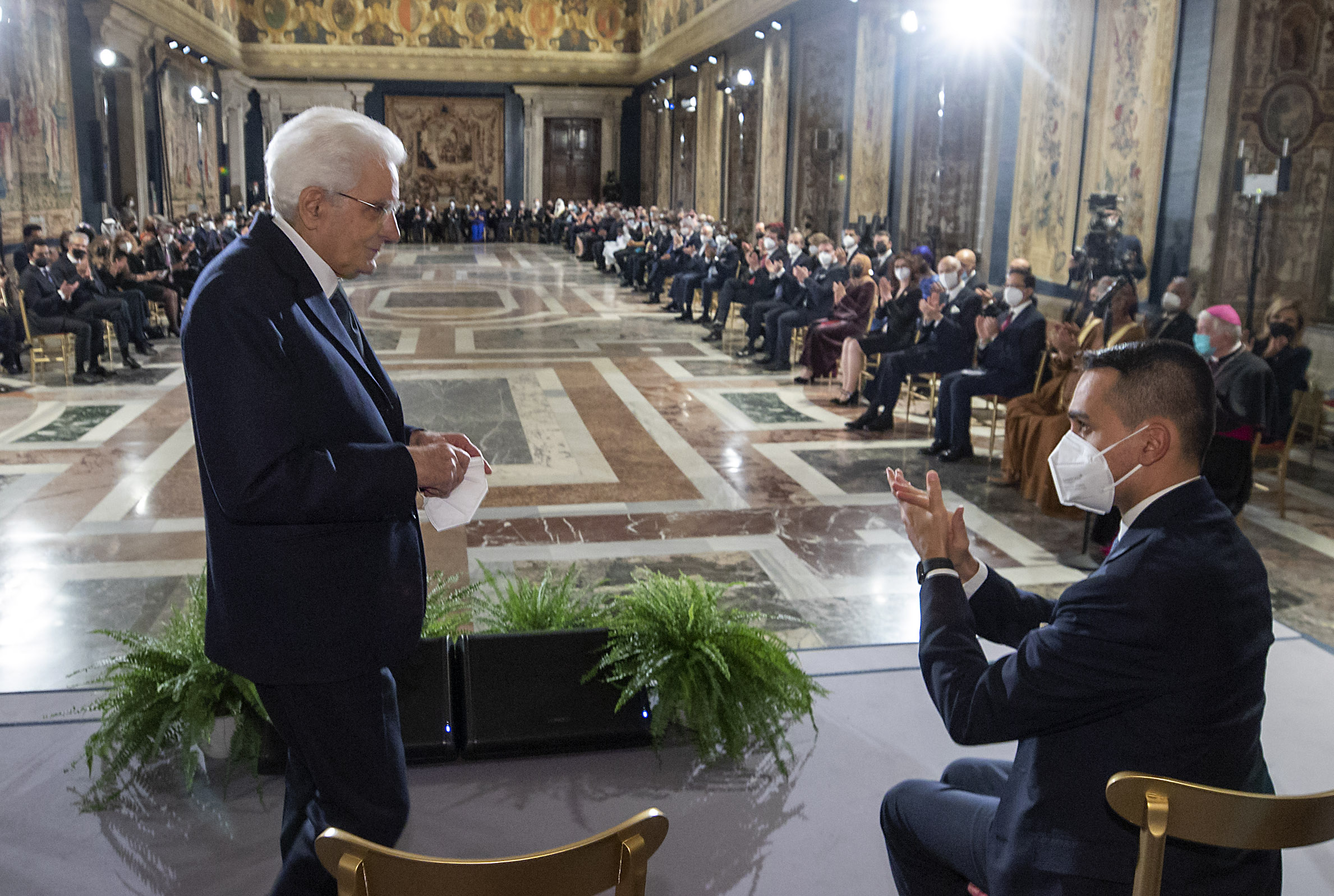 Palazzo del Quirinale, 16/12/2021 (I mandato) Il Presidente Sergio Mattarella con il ministro Luigi Di Maio, Marina Sereni, Vice Ministro agli Affari Esteri e alla Cooperazione Internazionale, Manlio Di Stefano, Sottosegretario di Stato agli Affari Esteri e alla Cooperazione Internazionale, Benedetto Della Vedova, Sottosegretario di Stato agli Affari Esteri e alla Cooperazione Internazionale e Ettore Francesco Sequi, Segretario generale del Ministero degli Affari Esteri e della Cooperazione Internazionale